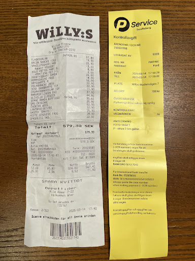 Sorry Wyllis but I can’t put better stars…30mn in your shop and 500kr of groceries, then 700kr of penalty… that’s not possible to stay kind. It’s like the Pservice staff were hidden to catch money to whom who forgot the disk.. well we’re foreigners and absolutely not used too see timed parking 🅿️ in a supermarket. well its a rule here and we must to accept or running away… but watch the picture of the post in front of our car… if you want the people to obbey to the rules, you should be perfect at first… no sign with the informations and sorry we didn’t...