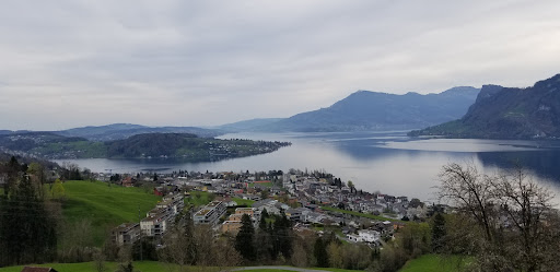What a sight to see! This pilatus takes you on a 5 minute trip to the mountain side. On the way up you get gorgeous views of the lake and the swiss Alps! For a round trip doing just this one pilatus (there's more) was 24 Frank's for 2 adults and our kids (3 & 5) and our dog were free. You pay when you get to the top (first stop). You just stand in line at the bottom and get on quickly when it's your turn. Each cabin seats 8 people. Then pay the gentlemen when you get to the top. It's Swiss Frank's cash only, no card. You can also purchase a pass. If you forgot cash, no worries, the resturant at the top can give you cash with purchase. At the top, there's an indoor resturant with a gorgeous view! There's indoor and outdoor seating, both with sites of the gorgeous view. There's also a trail to the next pilatus lift which I believe was about an hour or more (depending on the trail you take up). I was scared out of my wits, but it was worth the trip! The gentleman that takes your payment at the top was very outgoing and nice to talk to too.