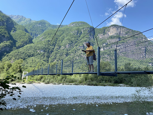 Read moreSehr lange Hängebrücke über die Maggia. Auch begehbar für Leute mit Höhenangst, dafür aber wirklich eine Wackelbrücke. An beiden Enden gibt es Möglichkeiten zum Grillen. Schöner Ausflugsziel, da die Maggia an dieser Stelle sehr breit ist und es Stellen mit Sand gibt. Es gibt 2 Zufahrten für Autos, bei der grösseren (nachdem Fussballplatz) muss man noch 10 Minuten durch den Wald laufen...