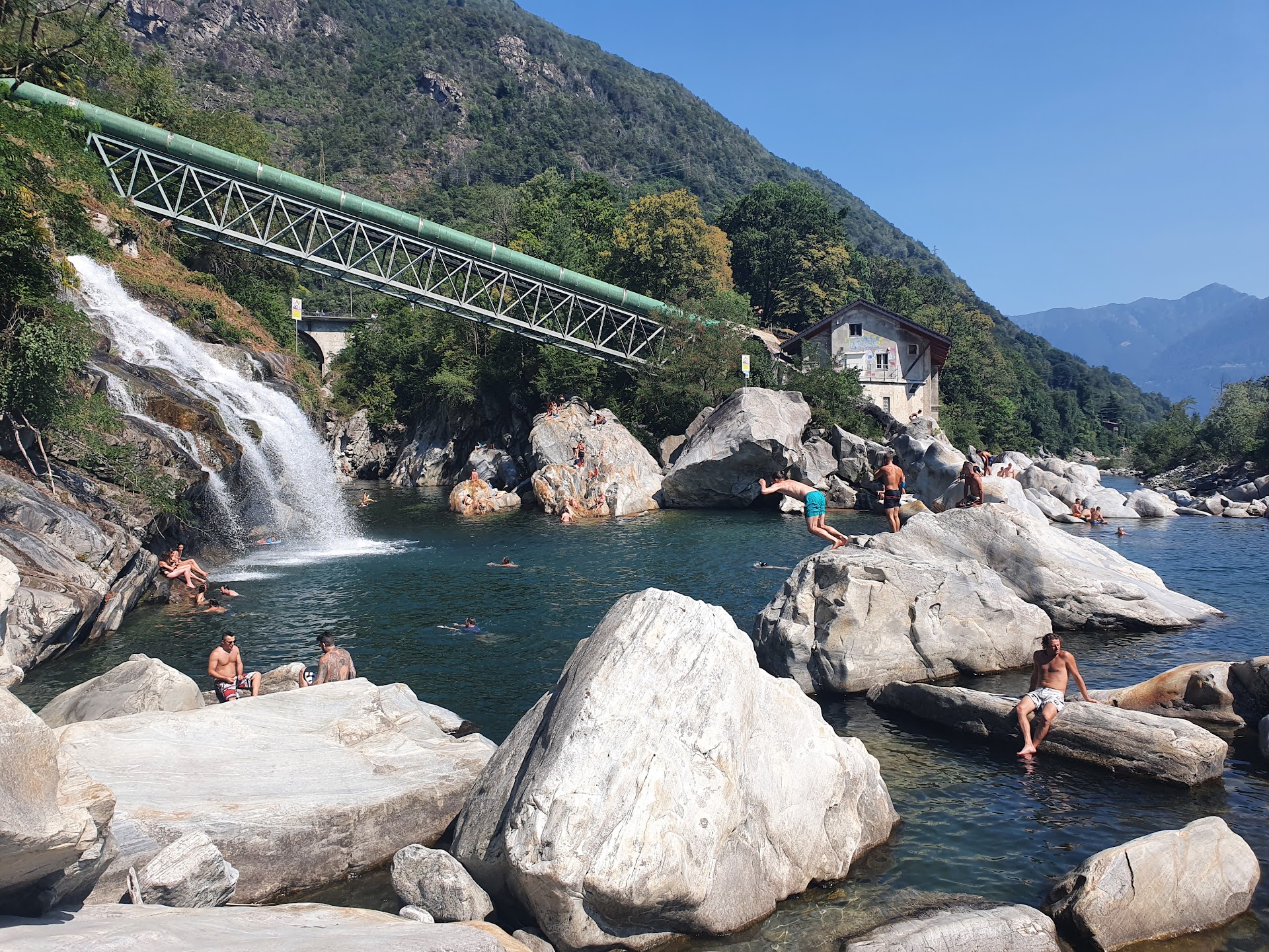 The negative with pools build by humans is that they have responsability, savety regulations etc. This is a "pool" made by nature (and partily a beach made by humans) It is a great pand beautiful place with many places to jump into the deep water from 1 to ~15 meter heights. Also a grand waterfall to get behind, water rapids to swim against and rock climbing fun.