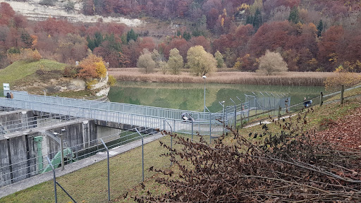 Lac de Pérolles, a reservoir formed by Maigrauge Dam, is a reservoir on the Saane/Sarine river at Fribourg, in western Switzerland. Its surface area is 0.35 square kilometres. The dam was built in 1872, and its height was increased by 2.5 metres in 1910. The watershed is 1,250 square kilometres.