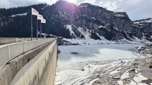 Spectacular artificial lake with great view of the almost vertical walls of epic 3000 meter peak peak of Hausstock. There is lots of hiking opportunities here, everyone will find something suitable. One can learn lots of interesting information about the water power plant installations from multiple boards placed all over the place - really worth checking, potential of power generation from the water in the elevation is impressive! The uphill from valley is narrow and relatively steep. The traffic should not be a worry as the whole place seems to be very quite. Definitely...