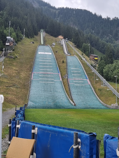 Äh Skisprung Schanze aberütsche, wo süsch Skispringer wie dür Simon Ammann dür d Luft flüge.