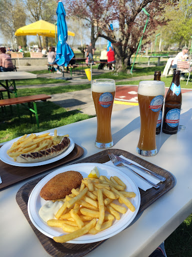 Das essen ist schon sehr teuer. (100Sfr für 5 Personen) Und die qualität ist auch unter Kebapstand niveau. Schade denn die lage wäre schön... Die pommes und chickennuggets waren gut. Aber das "gekochte" liess sehr zu wünschen übrig. Die käserösti wär eine dünne scheibe Tiefkühlrösti, eine Päcklirösti ist dagegen schon luxus. Die käsehörnli (15Sfr) waren fade nüdeli mit geschmacklosem käse. Der gemischte salat eine magere fertigmischung. Bei kartenzahlung wird dem kunden eine gebühr berechnet. Den minigolfteil kann ich nicht bewerten, sieht optisch aber nicht schlecht aus. Kann die wirtschaft leider nicht...