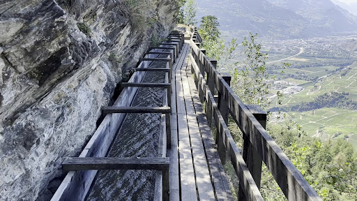 Un des plus beau bisses. Mais attention, si vous faites les dernier tronçon après Icogne jusqu'à la passerelle des Barmes, ça devient VRAIMENT vertigineux, bien au delà de ce que vous avez vu au début du tronçon entre Chermignon et Icogne. Les planches sans barrières se succèdent et il y a vraiment beaucoup de vide, et il y en a vraiment beaucoup. Et cerise sur le gâteau, en toute fin de parcours, il y a un énorme talus très très raide (un peu plus de 100 mètres de dénivelé) où il ne faut pas glisser non plus, pas de sécurisation. Donc voilà, on le fait parce qu'on a pas le choix.