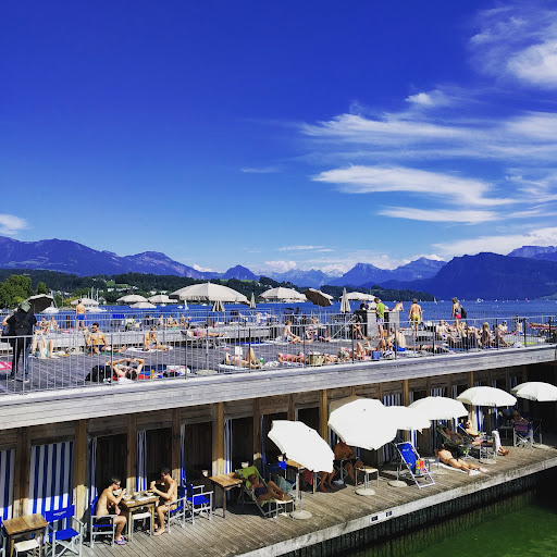 This is—in my opinion—the best place to go swimming in Lucerne! You can spend however long you want there, it's great for a quick lunch break, a nice afternoon, or even a whole day swimming! There is a lifeguard there, so you can always feel safe (and small lockers for your valuables), and they have great food and a nice bar. They also have great ice cream, and great staff! I especially like the chairs and parasol (which you have to bring yourself to most other beaches), and you can also rent beach chairs, which are great for relaxing, particularly on the big rooftop with an incredible view. From the Seebad you can see the whole lake, the city of Lucerne, Mount Pilatus, the Rigi and the...