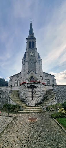 Está hermosa y gran iglesia está colocada en una pequeña loma, observando todo el pueblo y desde allí puedes tener las mejores vistas del lago de Lungern, para ello debes subir varios niveles donde vas disfrutando de los jardines, y tumbas Por dentro la iglesia está está hecha en columnas y arcos al estilo grecorromano sobre el altar mayor colgando hay un enorme crucifijo transparente que con la luz se observan colores como un prisma allí mismo puedes ver los hermosos cristales el principal en el centro el del corazón de Jesús igual detrás del altar Dónde está el Sagrario está además de la Cruz con Jesús las mujeres y San Juan, las dos cruces con los dos ladrones que le acompañan.. en la parte posterior un órgano de tubo bastante grande que debe escucharse armoniosamente por la estructura de las cúpulas...
