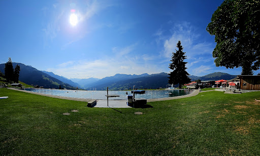 Read moreDas Alpen-Freibad ist wirklich eine Perle. Schön, gepflegt inmitten der Natur mit fantastischer Aussicht auf die Berge. Gleich daneben sieht und hört man Kühe. Der Pool ist in der Mitte zweigeteilt. Eine Seite für Schwimmer inkl.einem 1m Sprungbrett, die andere zum Planschen mit einer aufblasbaren Insel. Das Wasser ist erfrischend und sauber. Es hat Sonnenschirme zum mieten. Gegen ein Depot erhält man Tischtennissschläger mit Ball. Ein Kickerkasten ist auch kostenfrei verfügbar. Für kleine Kinder hat es noch ein separates Kleinkinderbecken. Umkleidekabienen und Toiletten sind vorhanden und sauber. Das Restaurant ist klein aber fein. Alle Preise sind sehr fair. Parkplätze sind gleich daneben verfügbar mit Parkuhr. Hinter dem Freibad gibts noch einen Spielplatz mit Grillstelle und einem kleinen...