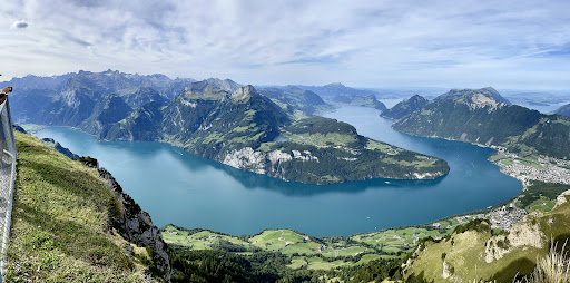 Read moreThis is a spectacular spot on a high cliff overlooking the Vierwaldstättersee five thousand feet below you. You'll see Lucerne as though over the curve of the Earth at the far end of the lake and ferries shuttling below you like striders on the surface of the water. The chalet where you can have dinner or spend the night is well managed and attentive with delicious food and comfortable quarters. Outside, goats gambol in a coral where the kids can play with them and Alpenhorns usher in the sunset. This is also a well known destination for mountain hikers. Nearby is the world's steepest funicular railway that is so steep, the cars rotate as it climbs. We're headed back to Switzerland and we will definitely...