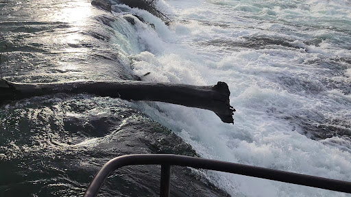 We started at the Rhine boat tour, taking the Red Line across the river. From the landing, riding glass elevator. We strolled toward the Rheinbrucke bridge, enjoying the peaceful scenery and fewer crowds compared to the main viewing decks. After crossing the bridge, we walked toward the Rheinfallquai promenade, passing scenic viewpoints along the way until we reached the lively main area by the falls.