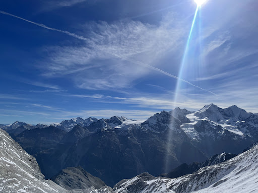 On top you have a beautiful view, seeing the Matterhorn and also the Mont Blanc if the weather conditions are nice!