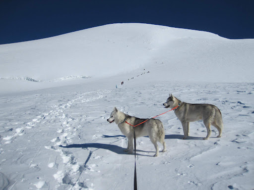 Le sommet le plus haut de la chaîne du Breithorn, à l'ouest du massif, surplombe le domaine skiable de Zermatt. C'est le sommet de plus de 4000m d'altitude le plus facilement accessible, grâce aux installations mécaniques du Petit Cervin. Le 18 octobre 2014, j'y ai amené mes chiens par la voie normale, tout à l'ouest, et réussi à descendre l'arête jusqu'au petit col avant le sommet central, grâce à des conditions de neige optimales. Ce jour-là, une avalanche avait blessé quelques personnes sur la face sud, réchauffée par le soleil! Un gros redoux s'était produit après une importante chute de neige... Comme les conditions de neige sur l'arête étaient excellentes, j'avais heureusement fait le bon choix, et quel spectacle face aux sommets...
