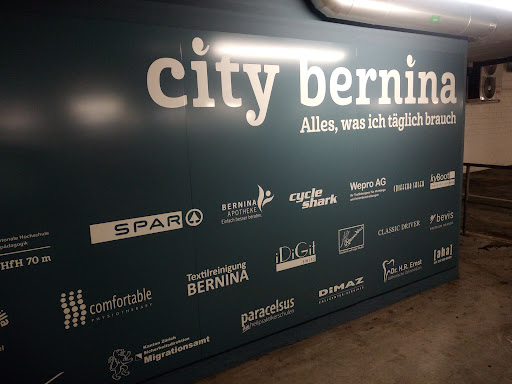 I know Bernina since several years and it has pros and cons. Parking is cheap and comfortable. 30 mins for free. Spar inside has lots of italian products hard to find elsewhere and quality is generally speaking high. There is also a (small) selection of food to eat on place.