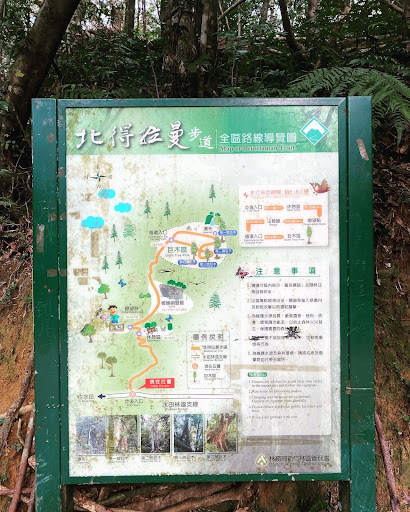 水田林道登山口→(1K, 45分鐘)→第一休息站→(0.2K, 20分鐘)→迴音谷→(0.4K,25分鐘)→下神木叉路口→(0.5K, 15分鐘)→1號神木→(0.3K, 15分鐘)→ 2至4號神木→(0.2K, 15分鐘)→下神木叉路口→(1.6K,...