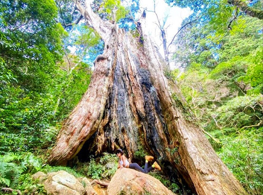 再遇見我愛❤️的抱樹石~~好有畫面 瀑布(水量不足) 再來是巨大神木的背面 繞到正面真的感覺超級值得壯觀好有魅力啊 回程時沿路高高低低的山路崎嶇難行真的要小心⚠️