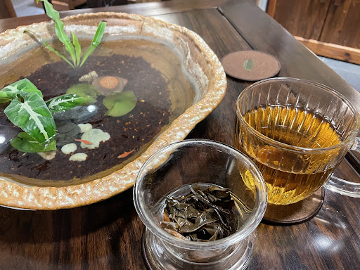 No pics of the art allowed so here’s a pic of the teas we got (the 200NTD ticket comes with complementary drink). Notice the little fish swimming...