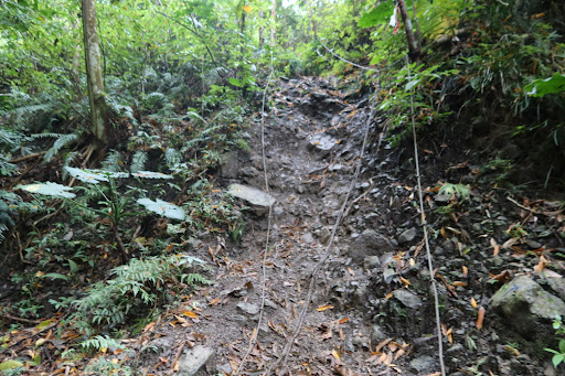 Read more2021-1-24 女乃山因為取名不雅改為女仍山,不過這樣聽起來卻像里龍山,跟民宿老闆講他就聽錯了,哈哈。這個山應該是我目前爬過最難爬的小百岳,跟三腳南山,大橫屏山,或尾寮山有拼,但是危險性遠遠超過。下切溪谷兩次不說,路面非常濕滑,又陡峭。今天沒下雨,但是卻好像走在雨林裡面。一開頭水泥農路接石板路,這個石板路也會滑,之後第一個陡坡是泥坡,拉繩兩條超級粗的,抓起來都覺得重,可能是泡水的關係變很重,很不適合用來爬坡,上面也沒打結,超難抓。下山時用力抓到手抽筋。下次有登山隊要去可以重新綁一條繩子。第一段陡坡上來路好走,但沒多久就接懸崖邊的窄小步道,有些地方坍塌走起來很驚險,往下一看就是溪谷,超恐怖。好在大部分有繩子。接著是溪谷。亂石溪谷很美,但是潛藏的危機更大。今天溪水川流,但小心走可以完全不碰到水。問題是濕滑。看到山友快樂的拍照,下一秒卻在岩石上滑倒,美景卻藏著危險。上切回步道,接著又是陡坡。後段很多陡坡沒有拉繩,有樹幹抓樹幹,沒樹幹就抓一把草或芋葉,但是要小心不要抓到有刺的黃藤。還有就是要注意頭上的樹幹,今天被K了3,4次。兩次溪谷要再爬上來的石頭陡坡有點難,因為石頭很滑又沒踏點,只能靠手臂力量。第一個溪谷上切我竟然差點爬不上去。下山小心翼翼,結果還是滑倒兩次,右肩肌腱拉傷。都是在靠近溪流附近的步道,石頭很滑,瞬間四腳朝天,一定要小心。拉傷還好,骨折就麻煩了。好在不是在坍塌路段滑倒,不然就要跟世界說再見了。今天星期天有兩三個登山隊,人還不少。本人是慢腳,到三角點一看記錄已經花了3小時55分鐘,可能太常看地圖了。後面上來一對年輕人說上山只花了2小時......