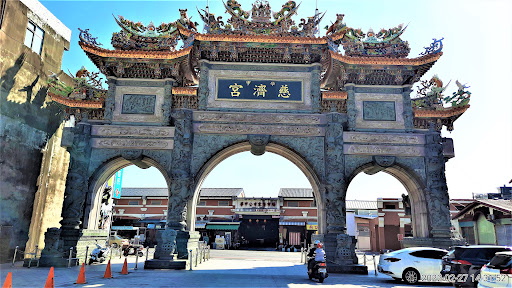 慈濟宮經內政部評定第三級古蹟,本宮八百餘年歷史的神像開基二大帝,係來自福建泉郡白礁慈濟宮,於康熙年間由李姓者自白礁迎來奉祀,以迄於今為全省大道公廟僅有者,因此終年香火鼎盛。每年農曆三月十一日是該廟的主要祭典活動「上白礁謁祖」,長達三公里的祭典隊伍由「蜈蚣陣」領頭,蜿蜒前進,民眾相信讓蜈蚣陣從頭上經過,可以消災避邪。整個活動表達先民對大陸福建白礁鄉渡海來台,飲水思源追懷家鄉的重大意義,因係隔海遙祭,故稱「上白礁」。