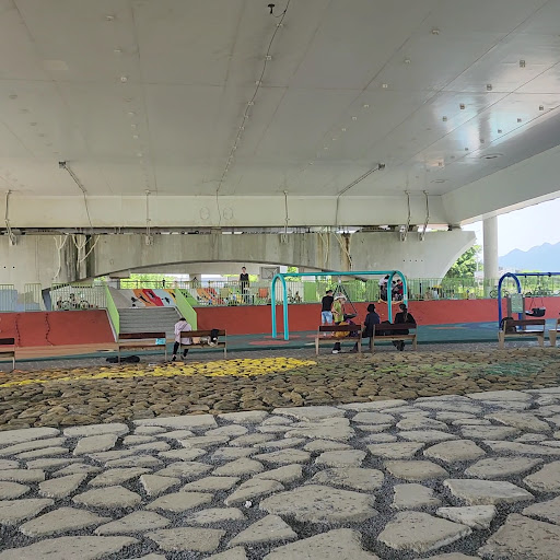 🏖️主要公園設施剛好就在社子島大橋下,就算是中午時間,也不會被陽光直曬到,加上多處設有座椅、機車練習區?(有特別繪製簡易的行駛區域)溜滑梯、鞦韆、沙地包含軟墊,安全防護部分就觀看到的部分基本都有做到,不僅友善也適合家長帶著小朋友一起前往,因為位置就在河岸旁,欄杆也沒有設定的很高,建議還是不要讓小朋友太過靠近。
