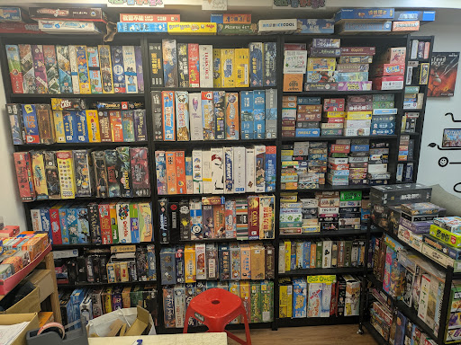 Excellent small boardgame store where you can buy and play games in Taipei, just a short walk from Taipei Main Station or Ximen. Located on the second floor with a lift tucked back into a small entrance, it is easy to miss the entrance - but persevere! Of particular note is that they stock a wide range of games in English as well as Chinese. These include classics from the major publishers, as well as very new and recent games of all genres. I saw Dungeon crawlers, co-op, solo-only, racing, worker placement, 4X, area control, legacy, lcg, etc. Some accessories were also on sale. By the standards of most of the boardgame shops/ cafes I have been to, there was an impressive English selection! :-) HOWEVER, do not go expecting the kind of very large site and selection offered in specialty stores in the US etc. (This is not a complaint! This is to be expected as the shop is a small location on the second floor of a standard building, not a warehouse.) The prices I saw ranged from about the same as US Amazon with shipping to East Asia (for smaller games) to significantly more for very large and heavy kickstarted games by boutique publishers. (In other words, perfectly reasonable pricing for a small bricks-and-mortar operation that is importing niche hobby items in an already expensive lifestyle hobby.) There are several tables to play on with sofa seating and chairs. We brought our own games, but there was a selection of games to rent out too (although of course these were mainly in Chinese language.) Canned drinks are available to purchase, but the friendly staff were happy to direct us to the nearest convenience store if we wanted to bring in our own drinks (which we did.) The shop use an hourly rate system for renting play space, but also have a 'day rate' for longer stays. We went on a Friday afternoon, around 2.30 pm, and we were the only people there. (YMMV - call about availability of seating). Before visiting, I dropped by their website, where you can search for their current stock. In terms of service, staff were really friendly and communication in English wasn't a problem on the day we visited. Finally, (as you may be there several hours...) it is worth noting that there are toilets on site and these were clean and well maintained. If in the area, I'll definitely be back to scan those...