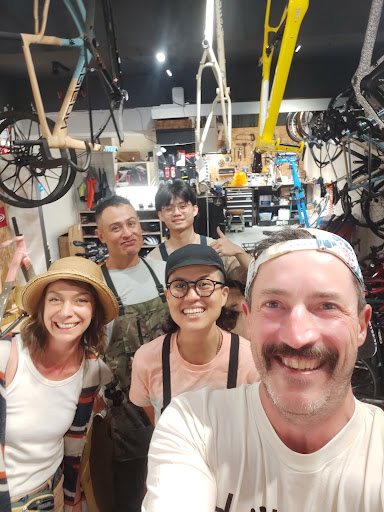 Read moreI had the fantastic luck of crossing Alec on a bike ride while my bike was making some terrible noises. He said not to worry and to just come by the shop, that he had the necessary tools back and the shop and could get me sorted and back out on the road! So, I rode into town with him where I met his super kind and knowledgeable colleague, Alex. In less than 5 minutes, Alec had identified the problem in my drive train that was leading to all my unnerving sounds. Just a few minutes later, he had everything cleaned up, tightened up, and running smoothly again! He also double checked my chain strain and brake, recommending that I change my chain and spruced up my braking action. All the while, I had a great chat with the guys about planning a tour around Taiwan with my mates in May. They knew all the best routes and had loads of tips for how we should do it, where to go, how much climbing we'd have to face or how to avoid it. I also loved checking out the retro bikes they were building up and blinging out! They looked so good! Even the touring bikes they offer for riding around the island look great! I can't wait to get back there to plan our tour with my mates! We will for sure be renting their bikes and gleaning all the information we can from these great guys!!!