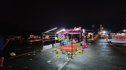第一次來到這個夜市,結果..運氣不好,當天下起傾盆大雨... 一開始到的時候..雨停了,想說路邊可以停車,停車後,想說來逛逛,結果走沒多久又開始下雨,然後越來越大,當場的攤販只能狼狽的趕緊收拾,因為幾乎都是露天的狀態,雨大根本撐不住,而且路邊是凹凹凸凸的柏油路,也不好走,又有積水,也沒辦法邊逛邊吃,最後人也都跑光,沒有顧客,攤販也只能收了。