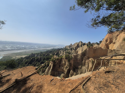 小烏鴉每次開車走中山高,經中部北上過泰安休息站後,總會被右前方的火炎山,猶如被開天巨斧所劈開那一道又一道火紅色的山溝給吸引,常常會忘了要趕緊猛踩油門,準備爬上三義這個路段的大上坡,尤其是在夕陽西下落日餘暉的投射下,又紅又亮的每一道山壁上,讓人真的以為山上正在猛烈燃燒著大火,而且火光四射,讓人眼睛完全都睜不開來。 每每經過時總是告訴自己找個時間前來朝聖一番,但總是沒有機會前來,二十幾年就這麽匆匆的過了。 這次要到台中訪友便決定提前一天,來走一走這多年來心心念念的火炎山。