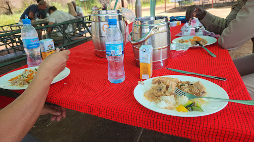 Every day included a hot picnic lunch on a table cloth no less. Ozzie had a picnic basket with two stainless steel canisters, real pottery plates and real metal cutlery. The food was freshly prepared by the hotel each night, included rice/pasta, chicken and/or beef, vegetables. While other safari guides provided a box lunch, cold sandwich, chips, and a juice box.