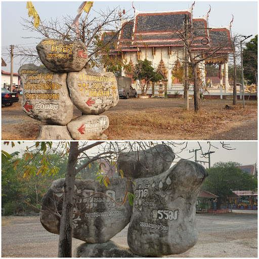 [ ] ป้ายบอกทางในวัด เท่ห์ดี แปลกไม่เหมือนใคร ทำเป็นรูปทรงหิน บอกสถานที่ ที่น่าสนใจตามจุดต่างๆ ภายในวัด