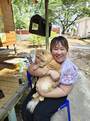 Read moreМы специально ехали к Дживону и его братьям. Арендовали машину в Убонратчатхани. Доехали за пару часов. Монах и котики были дома, нас сразу же пригласили войти. Там были ещё гости: пара мужчина и женщина. Они говорили на тайском. Мы тайский язык не знаем, поэтому изъяснялись жестами, но все было понятно. Провели там примерно полчаса. Сделали кучу фото и видео. Монах повязал нам фенечки, подарил 2 брелока с изображением Дживона и Намо. А ещё усы Дживона и браслет. Мы, конечно же, оставили донат, 1000 бат. Монах был очень приветлив. Котики рядом носились и играли...