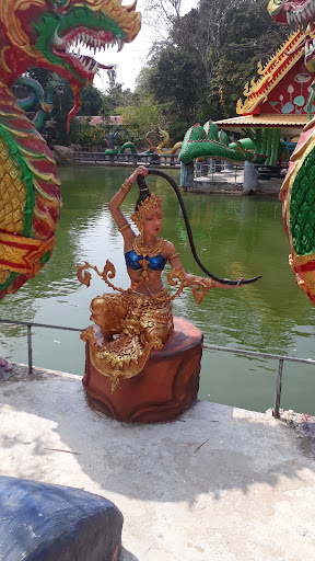 The hidden gem of Amnat Charoen. It is a place of worship but for us its more of a spiritual enlightening. There are so many nooks with different, well maintained statues and scenery. Theres a beautiful fish pond in the back with tons of different type fish besides catfish. There is a fish food vending machine for only 10 baht and the container to use is free. There some really creative large statues depicting different religious figures so I'm told. The serpent seams to be the main theme for here and many provinces along the Mekong River. Dont forget to check out the Monkey statues and the Big Surprise they are climbing...