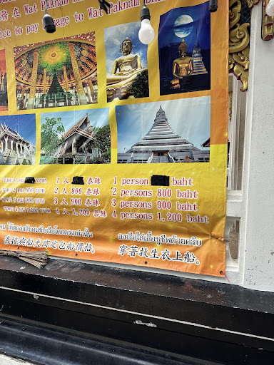 🛍️ FLOATING MARKET HERITAGE: In the past, Wat Sai was home to one of Bangkok’s most vibrant floating markets. Although the floating market no longer operates on water, there’s still a land-based morning market next to the temple. You can walk around and enjoy local snacks, fruits, and even some handmade items. A wooden sign remains in honor of the old floating market days — it’s nostalgic and adds to the historical charm.