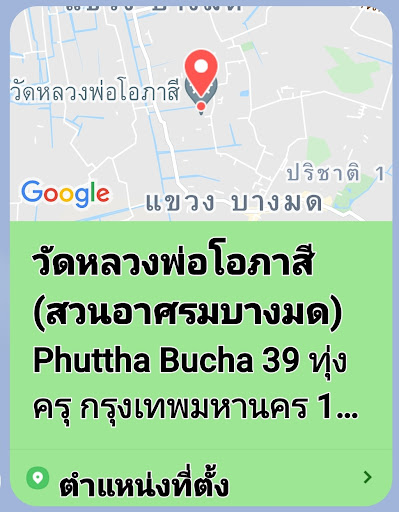 Read moreวัดหลวงพ่อโอภาสี วัดหลวงพ่อโอภาสีตั้งวัดเมื่อวันที่ 5 มีนาคม พ.ศ. 2536 โดยเมื่อประมาณปี พ.ศ. 2485 พื้นที่ย่านบางมดแห่งนี้เต็มไปด้วยสวนส้ม หลวงพ่อโอภาสีได้เดินธุดงค์มาปักกลด ด้วยปฏิปทาอันน่าศรัทธาเลื่อมใส ชาวบ้านจึงพากันไปกราบไหว้เป็นประจำ จนเศรษฐีเจ้าของที่ดินได้ยกที่ดินให้สร้างเป็น "อาศรมบางมด" และได้นิมนต์ให้ท่านอยู่เป็นการถาวร ต่อมาเปลี่ยนมาเป็นชื่อ "วัดหลวงพ่อโอภาสี" เชื่อกันว่าท่านเป็นพระที่สามารถรู้ถึงเหตุการณ์ล่วงหน้าและทำนายทายทักได้ถูกต้อง ท่านยังถือลัทธิบูชาเพลิง ประวัติหลวงพ่อโอภาสี ท่านมีนามเดิมว่า “ชวน มะลิพันธุ์” เป็นชาวจ.นครศรีธรรมราช เกิดที่ อ.ปากพนัง เมื่อปี ๒๔๔๑ เมื่อโตขึ้นได้เล่าเรียนเขียนอ่านและได้บวชเป็นสามเณรที่วัดโพธิ์ ในเมืองนครศรีธรรมราช เมื่อเรียนจบชั้นมัธยมที่ ๖ ท่านได้เดินทางเข้ากรุงเทพฯ ญาติได้นำไปฝากไว้กับ สมเด็จพระสังฆราชเจ้า กรมพระยาวชิรญาณวโรรส วัดบวรนิเวศวิหาร เมื่ออายุครบ ๒๐ ปี ได้บวชเป็นพระภิกษุ โดยมี สมเด็จพระสังฆราชเจ้าฯ ทรงเป็นพระอุปัชฌาย์ หลังจากบวชแล้ว หลวงพ่อได้ศึกษาเพิ่มเติมต่อที่วัดบวรฯ จนสอบได้เปรียญ ๕ ประโยค หลังจากนั้นท่านได้หันไปสนใจด้านวิชาอาคม และได้เดินธุดงค์ไปเรียนวิชาอาคมต่างๆ จากหลายพระอาจารย์ เป็นเวลานานเกือบ ๒๐ ปี โดยพระอาจารย์ที่ท่านได้ร่ำเรียนวิชานานที่สุด คือ หลวงพ่อกบ วัดเขาสาลิกา จ.นครนายก ศึกษาเรื่องเพ่งกสินไฟ เพื่อให้จิตใจสงบนิ่ง และหลุดพ้นจากกิเลสต่างๆ ทำให้ท่านมีจิตใจที่กล้าแกร่ง วิชาอาคมที่ร่ำเรียนมาจึงเข้มขลัง จากการที่ท่านได้กลับมาอยู่วัดบวรฯ อีกครั้งหนึ่ง และได้ทำพิธีบูชาเพลิง ทำให้ไม่สะดวกในการประกอบพิธี ท่านเห็นว่าเป็นการไม่เหมาะสมที่จะอยู่ในวัดหลวงแห่งนี้ต่อไป จึงได้เดินทางธุดงค์ไปอยู่ที่ย่านบางมด ชาวบ้านในพื้นที่ให้ความเคารพนับถือหลวงพ่อมาก จึงได้สร้าง "สำนักสงฆ์อาศรมบางมด" ถวายท่านให้อยู่อย่างถาวรสืบไป สำนักสงฆ์แห่งนี้เจริญรุ่งเรืองขึ้นตามลำดับ จนได้รับการยกฐานะขึ้นเป็น "วัดหลวงพ่อโอภาสี" มีผู้นับถือเดินทางมาหาขอให้ท่านช่วยเหลือในเรื่องต่างๆ ซึ่งหลวงพ่อได้เมตตาสงเคราะห์ให้ตามที่เห็นสมควร ผู้คนที่มาขอให้หลวงพ่อช่วยเป็นที่พึ่ง มีทั้งชาวบ้านชาวสวน รวมถึงคหบดี แม้แต่เจ้านายชั้นผู้ใหญ่ เช่น จอมพลสฤษดิ์ ธนะรัชต์ ก็ได้ไปกราบไหว้ท่าน พร้อมทั้งร่วมทำบุญสร้างวัดกับท่านเป็นประจำ สำหรับเรื่องการบูชาเพลิงนั้น นับเป็นเรื่องที่สร้างความสงสัย และเป็นปาฏิหาริย์ที่มีผู้ประสบกับตัวเอง