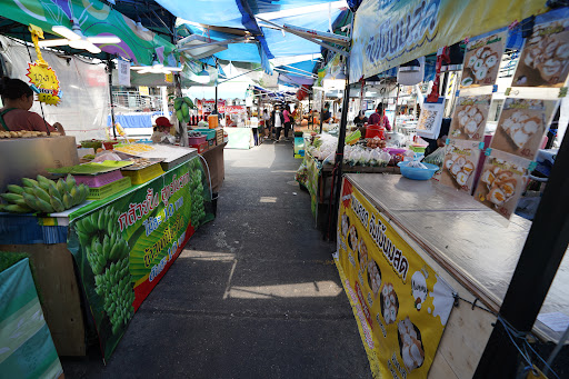The market typically features stalls selling fresh fruits, vegetables, meats, and seafood, as well as prepared foods like Thai curries, noodles, and snacks. It's a lively spot where you can immerse yourself in the local atmosphere, sample delicious street food, and shop for unique items.