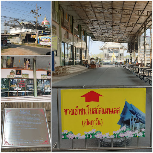 Read more... จุดก่อเกิดแห่งศรัทธาใน พ.ศ.2443 โดยมีอุโบสถ(หลังเก่า) ที่จัดสร้างโดยหลวงพ่อเหลือวัดสาวชะโงก (พระครูนันทธีราจารย์) ริเริ่มจัดสร้างในปี พ.ศ.2471 เป็นเขตสีมาสำหรับทำสังฆกรรมแต่ดั้งเดิม เรียกขานจวบจนปัจจุบันว่า "โบสถ์หลวงพ่อเหลือ" ภายในโบสถ์หลวงพ่อเหลือ มีรูปภาพ รูปหล่อหลวงพ่อเหลือ และวัตถุมงคลของหลวงพ่อเหลือให้สักการะเยี่ยมชม. ...ปัจจุบัน อุโบสถหลังใหม่จัดสร้างจากวัสดุสแตนเลส ใช้งบประมาณกว่า 50 ล้านบาทจากแนวคิดของ พระครูภาวนาจริยคุณ(ประยงค์ คุณจโร) เจ้าอาวาสที่ต้องการให้อุโบสถเป็นถาวรวัตถุคู่บวรพระพุทธศาสนาได้เป็นพันปี. เบื้องหน้าอุโบสถ ประดิษฐานพระสิวลี ภายในอุโบสถ ประดิษฐานพระประธานอันมีพระนามว่า "พระพุทมหาลาภ" ภาพจิตรกรรม พุทธประวัติและชาดกโดยวิธีพ่นแอร์บรัช อีกหนึ่งความงดงามที่ปรับเปลี่ยนวิธีถ่ายทอดตามยุคสมัย. ... วัดในปัจจุบันนอกจากเป็นศูนย์รวมความศรัทธายังได้รับการพัฒนา ถาวรวัตถุภายในวัดให้โดดเด่น งดงาม เป็นจุดดึงดูดผู้มีจิตศรัทธาในการสักการะเยี่ยมชม. *ทางวัดอยู่ในระหว่างจัดสร้าง "พระมหาเจดีย์สแตนเลส" วัตถุประสงค์ของการจัดสร้าง -เพื่อบรรจุพระบรมสารีริกธาตุ -จัดตั้งหลวงพ่อโสธรทรงเครื่องขนาดหน้าตัก 99 นิ้ว. -จัดตั้งหลวงพ่อพุทธมหาลาภทรงเครื่องหน้าตัก 59 นิ้ว. -ภายในชั้นบนจัดแสดงพุทธประวัติและกิจกรรมพ่อหลวง ร.9 แบบ แสงสีเสียง. *ท่านใดมีจิตศรัทธาและประสงค์จะร่วมบริจาคทรัพย์สมทบทุนในการจัดสร้าง "พระมหาเจดีย์สแตนเลส"...
