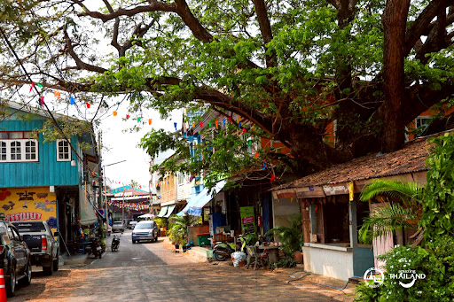 อีกไฮไลท์นึงนอกจากจะเดินเล่นชมบรรยากาศเก่าของตลาดโบราณแล้วที่นี่มี street Art ที่แสดงให้ให้เห็นวิถีชีวิตของคนในชุมชนภาพใหญ่ๆมีทั้งหมด 3 ภาพ ภาพฝูงควาย ภาพเด็กกระโดดเล่นแม่น้ำเจ้าพระยา และ รูปที่ 3 คือรูปคนถือสุ่มจับปลา มาสรรพยาต้องเก็บให้ครบทั้ง 3 ภาพนะจ๊ะ