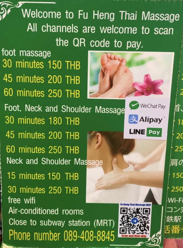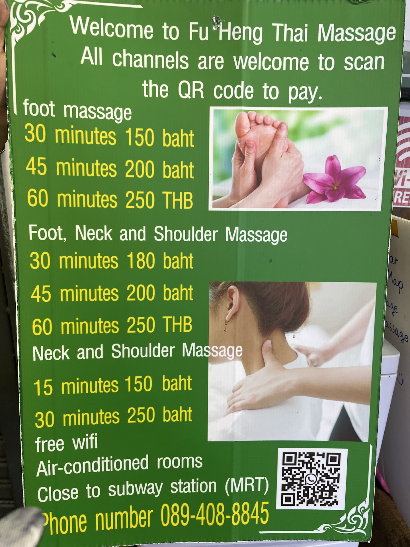 Definitely the better of the two massages I have gotten in Bangkok so far. We went in after looking at the reviews. The place was small but comfortable. There were two rooms and they were both full so we had to wait about 5 min to be seated. I got a 45 min foot massage for 200 THB. I thought it was good value for money. The technique used by the masseuse was really helpful to relieve the tension in my feet.