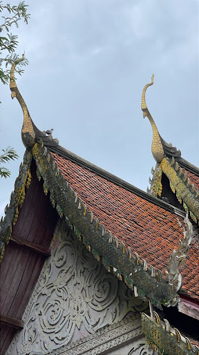 Beautiful neighborhood temple with some great features. The pagoda has several tiers and stands out along with some of the smaller, beautiful buildings. I liked the row of elephant statues and the woodwork found throughout the temple. Several novice monks...