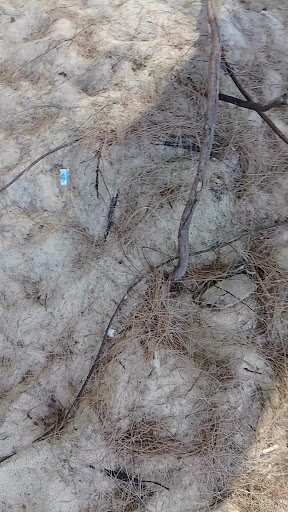 В лесу есть стихийная свалка помойка. Которая начала беспокоить нас своим запахом в последний день. Солнечные лучи нагревают мусор, а ветер разносит запах. Также к концу нашего отдыха сам пляж стал грязным.