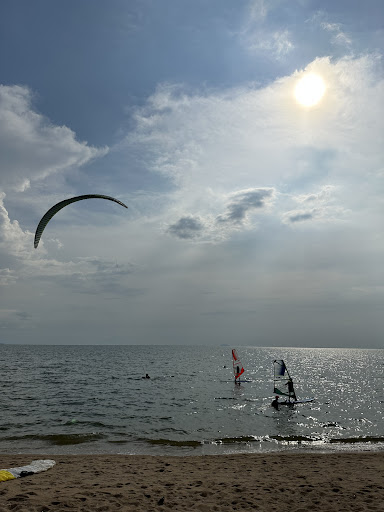 Read moreThese guys have a lot of windsurfing equipment, so they probably have what you want. I rented from them several times during a week and they helped me pick the right stuff for my skill level and conditions. The beach is amazingly level, meaning you can be 100 yards from the shore and still able to touch bottom. As my waterstarts were rusty, it was useful to stand on the bottom and get everything set-up, but there are some sharp objects (probably shells), so I recommend wearing shoes. The downside is that at low tide you need to walk your equipment a long way out before it's deep enough to stop the fin...