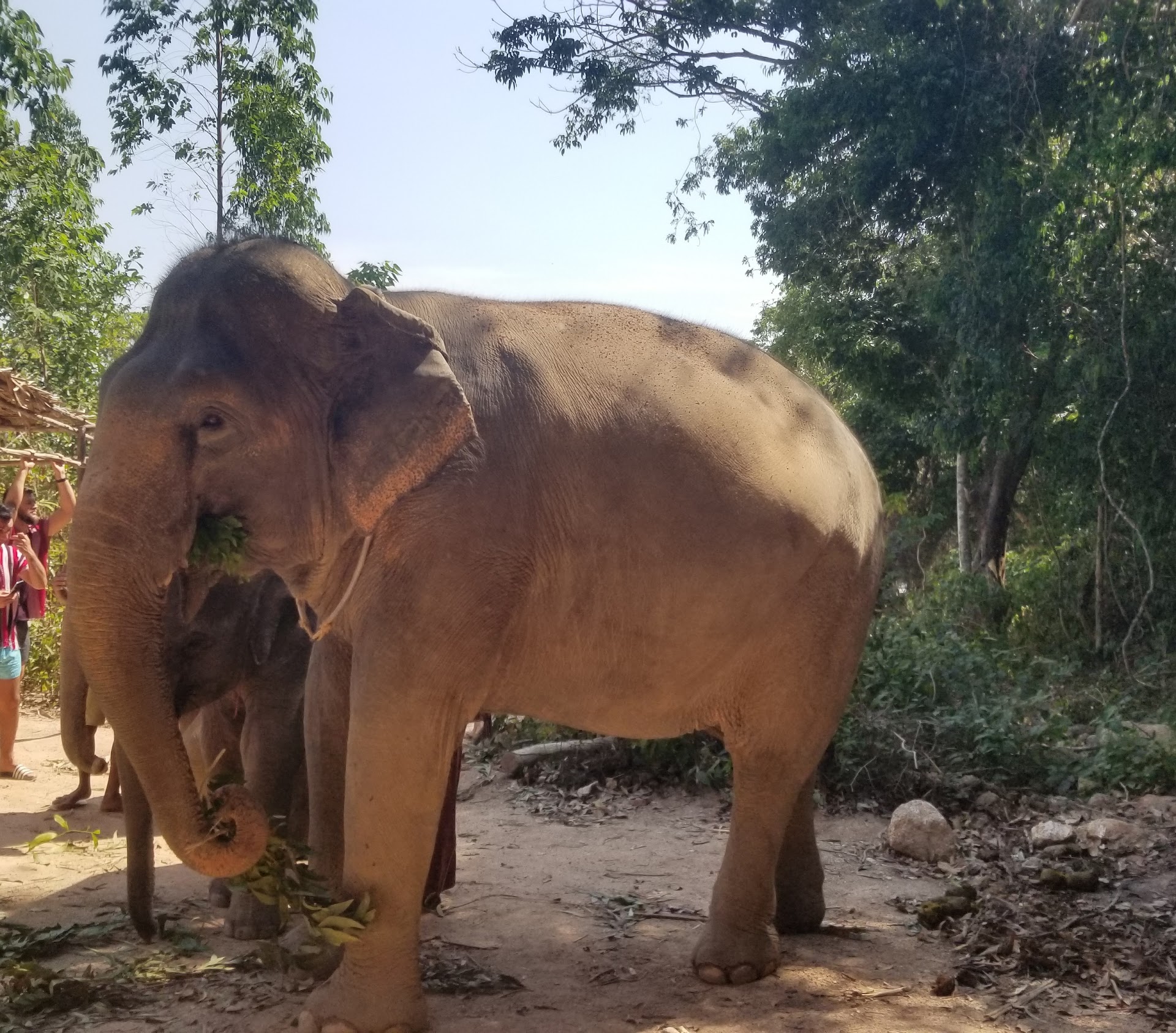 He actively tossed water NON STOP during the mud and bathing activities. I felt I was being attacked. Too many people during these activities, I felt overwhelmed, much less the 2(?) elephants.