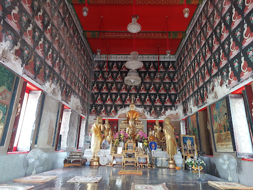In Taling Chan Temple, there is a beautiful Buddha image in the chapel called "Phuttha Mongkolsit Niramit Prachanat", which is a large Buddha image. There are also two Buddha statues in the sitting posture and there are also two Buddha statues in the pose of restraining the ocean, on either side of the main Buddha...