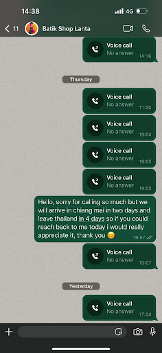 Read moreIt's too bad we have to leave a bad review of this place, but after we payed 1500 thb, the owner ghosted us and have not picked up or answer anything. He said he would ship it as soon as it was ready but it's been over a month and despite calling from multiple numbers he does not pick up!!! Which is very weird since we had a good time here and really trusted he would ship it.