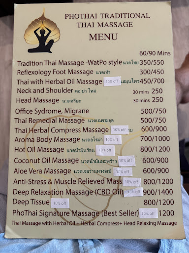 Read moreI went for a massage with my wife and had three treatments in the following order: Pho Thai Signature Massage, Reflexology Foot Massage, and Neck and Shoulder Massage. The two therapists who took care of me were exceptional—the massages were absolutely sensational. The woman at the reception was extremely kind. This place truly deserves 5 stars.