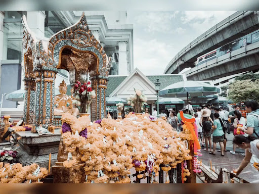 The Erawan Shrine, formally known as the Thao Maha Phrom Shrine, is one of Bangkok's most famous and revered religious sites. Here are the key details: Deity: It houses a golden statue of Phra Phrom (the Thai representation of the Hindu god Brahma, the god of creation). It is often mistakenly called the "Four-Faced Buddha" by visitors. The Four Faces: Phra Phrom's statue has four faces, which are traditionally believed to grant different blessings when worshipped clockwise: First Face (Front): Career, work, study, and life progression. Second Face: Relationships, family, and home life. Third Face: Wealth, luck, and fortune. Fourth Face: Wisdom, health, and peace. Significance: It is a powerful example of syncretism between Hinduism and Buddhism in Thai culture. Devotees (both Thai and foreign) visit daily to pray for good fortune and protection. Location: It is strategically located at the bustling Ratchaprasong Intersection in the Pathum Wan District of downtown Bangkok, right in front of the Grand Hyatt Erawan Hotel. Getting There: The easiest way to get there is by the BTS Skytrain to Chit Lom Station (Exit 8), which has an elevated walkway overlooking the shrine. Opening Hours: Generally, it is open daily from 6:00 AM to 10:00 PM (some sources say 11:00 PM). Admission: Free (though donations for the shrine's upkeep and charitable works are welcome). Offerings: Worshippers often bring offerings of marigold and jasmine garlands, incense sticks, candles, and fruits. Traditional Dance: If a wish is granted, devotees often return to hire the resident Thai classical dance troupes to perform as a gesture of thanks to Phra Phrom. History: The shrine was built in 1956 to appease the spirits after a series of misfortunes and accidents during the construction of the original Erawan Hotel (which the shrine is...