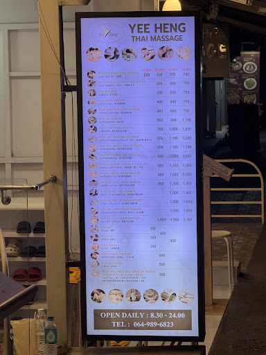 Read moreMy husband and I spent a whole day of walking (18,050 steps/about 7.87 miles and 16 hours worth of standing according to my Apple Watch)..we passed along a couple of massage places, offering 250 for an hour, but they seemed a bit sketchy for being underground/very dark, we considered it, but when we told them we wanted to do more shopping and we’d be back in about 15-20mins, they got very nasty with us. Yee Heng Thai Massage was AMAZING and worth every bit. We ended up doing the 350 for 1 hour of foot, neck, and shoulder. They start by switching out your shoes with slides, keeping inside the facility clean, and then washing your knees and below for you. It’s about 40ish-45ish minutes on “feet” which extend all the way up to the knee, lots of pressure and working out all parts of the foot, toes, heel, calf, shin, and knee using both lotion and oil, followed by hot towels and compression. After there they continue on to your shoulder and neck. I had a lot of knots in my shoulders and very stiff muscles in my back from carrying my bag all day and shopping, so he focused a lot on loosening that up for me. My husband needed more stretching and in addition to the stiff muscles he had in his back and his masseuse helped him crack his back. My husband has been desperately trying to get that done, but was always worried about possible consequences. We ended our massages and finished off our zen state with Thai tea outside, which as all the reviews say, only the really good establishments offer at the end of your session. When we finished my husband immediately told me, leave them the best review you’ve ever written, these guys are worth penny—which is funny, because I had to convince to let us do the massages in the first place and this is absolutely not something he ever likes...