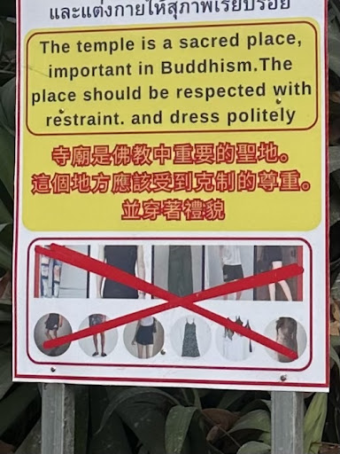 Ā Ā Ā Read moreSacred place, this area should be respected. Would you wear a bathing suite to a church in Europe? Not sure why the tourists in Pai are some of the most disrespectful Iāve seen. Thailand is a modest culture especially around monks at a holy site. There are several signs saying please dress appropriately. Take away, think about another country and their culture. Pai locals have begged authorities to enforce a dress code, wrote letters, and feel their town is being overrun by BAD TOURISTS. As westerns and the youth of a new generation be mindful of a culture that is not yours. Wear clothing that covers your knees and shoulders - its easy to pack in a day bag. If youāre too lazy to follow the rules, or just donāt...