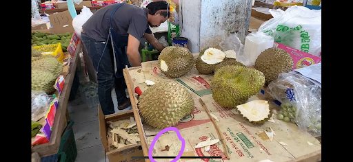 Read moreI went to this durian place ,they picked up a completely raw durian to me,there has a picture of that small raw durian ..it’s no quality durian .I paid 962 for a raw durian .later they changed another half raw durian to me ,it’s cost 818.so they should give me back money 144.but the lady only gave me 125. And I asked her ,it’s 144 ,not 125 Thai money ..she pretended she didn’t understand.later I got 145 Thai back ..but they started to cut meat for me ,you can see there has a large died cockroach on the dirty table ..they use dirty hands touch durian meat ,and out durian on table beside the died cockroach..no one can eat that durian meat cause the meat touched by all the dirty table and disgusting cockroach and hands ..I throw the durian to a Cat on the floor ..people don’t go to this durian shop …they want to offer you raw durian ,no meat ,no quality ,and place is dirty...