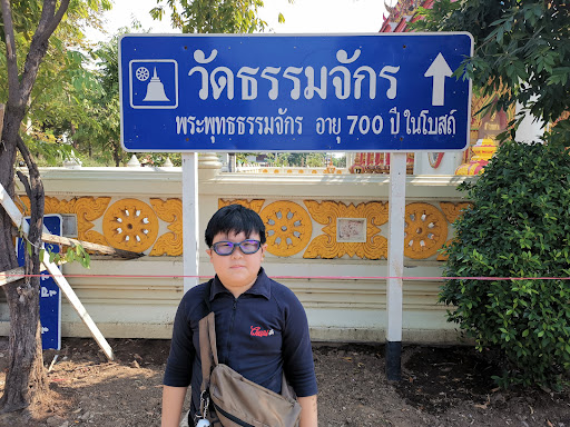 Situato a nord dei tre templi principali della città di Phitsanulok, Wat Thammachak ÃĻ un monastero le cui origini risalgono a piÃđ di sette secoli fa. PiÃđ modesta dei suoi vicini, si limita alla sua Sala che ospita gli insegnamenti del Dharma, cosÃŽ come al suo Ubosot, che sembra fungere anche da rotonda in mezzo a una strada improvvisata. All'interno di questa sala di ordinazione e del suo tetto a quattro livelli, i murales raffigurano le fasi principali della vita di Siddartha Gautama, lo storico Buddha, in uno stile e un arredamento che ricordano l'India. Se l'altare ÃĻ ben fornito di statue, la piÃđ bella ÃĻ inevitabilmente il Buddha posto in cima alla piramide, che porta il nome di Phra Phuttha Thammachak. Di piccole dimensioni, questo Buddha ÃĻ comunque altamente sacro perchÃĐ datato all'era Sukhothai, circa sette secoli fa, quando la città di Phitsanulok produsse sculture senza pari, come Phra Buddha Chinnarat, l'iconico Buddha di Wat Phra Si Mahathat Worawiharn. Questo Buddha di Wat Thammachak ÃĻ molto simile a Phra Phuttha Chinnarat, soprattutto per il fatto che una fiamma circonda il suo corpo. Nel dettaglio, perÃē, ha una fisionomia diversa, soprattutto per quanto riguarda la forma e i lineamenti...