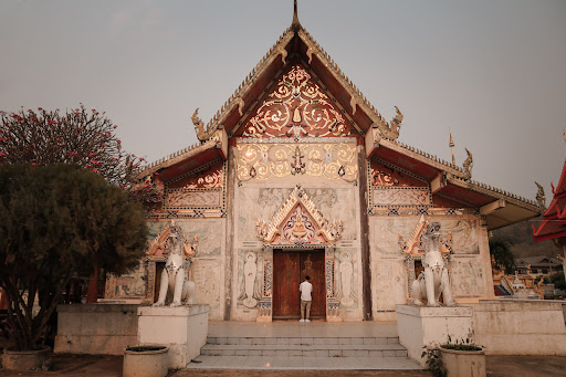 และอีกหนึ่งความโดดเด่นคือเจดีย์ สีทองอร่ามที่มีลาดลายการแกะสลักสวยงาม ด้านล่างมีบันไดนาคทั้ง 4 ทิศ ............ Wat Mae Thulao temple is located half an hour away from Sawankhalok by car. First thing first, we follow the Thai way of taking the trip—get the blessing from Buddha for a safe and blessing journey. Wat Mae Thulao or Wat Nam Lom (former name) was built in A.D. 1946. The holy temple featured the beautiful Buddhist sanctuary, ordination hall (Ubosot), Buddha images hall (Viharn), and chedi.